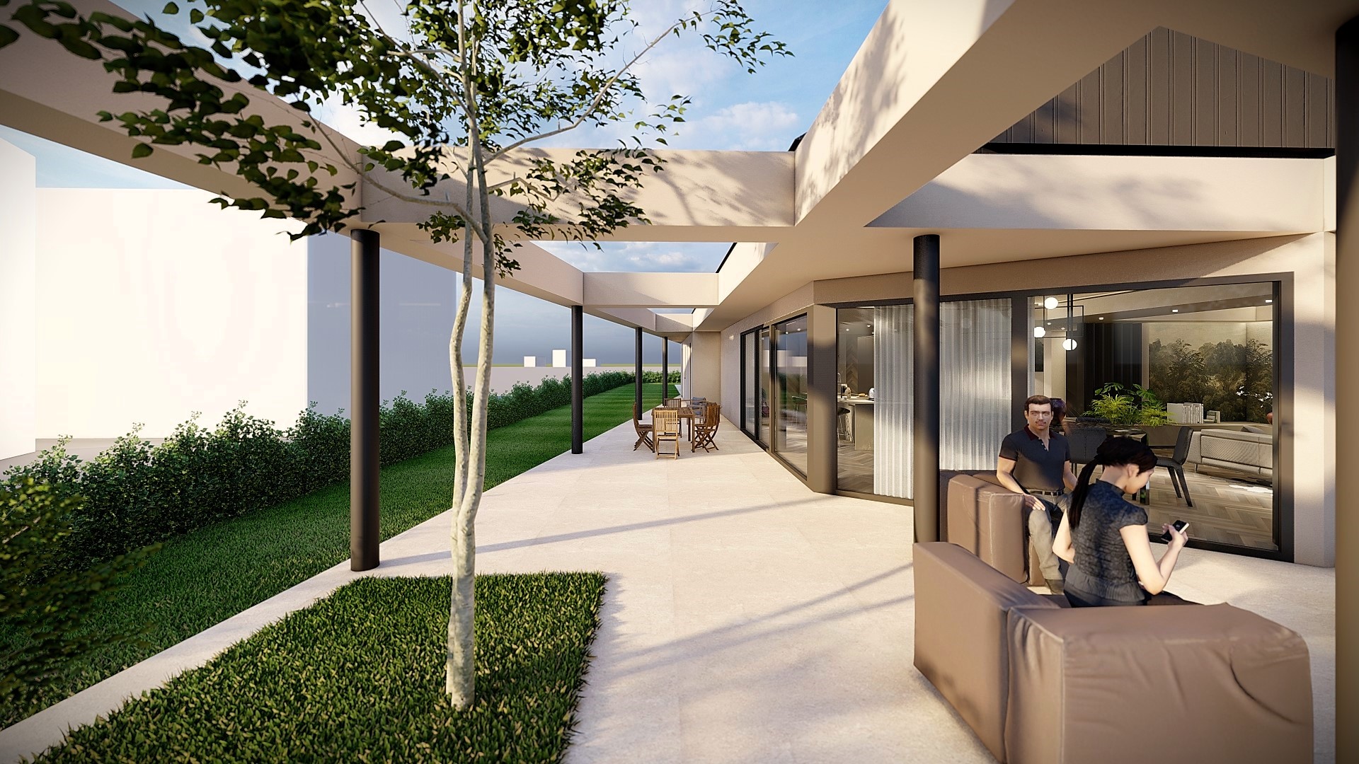 Le aperture misurate accolgono la luce orizzontale, modellando il ritmo della giornata.