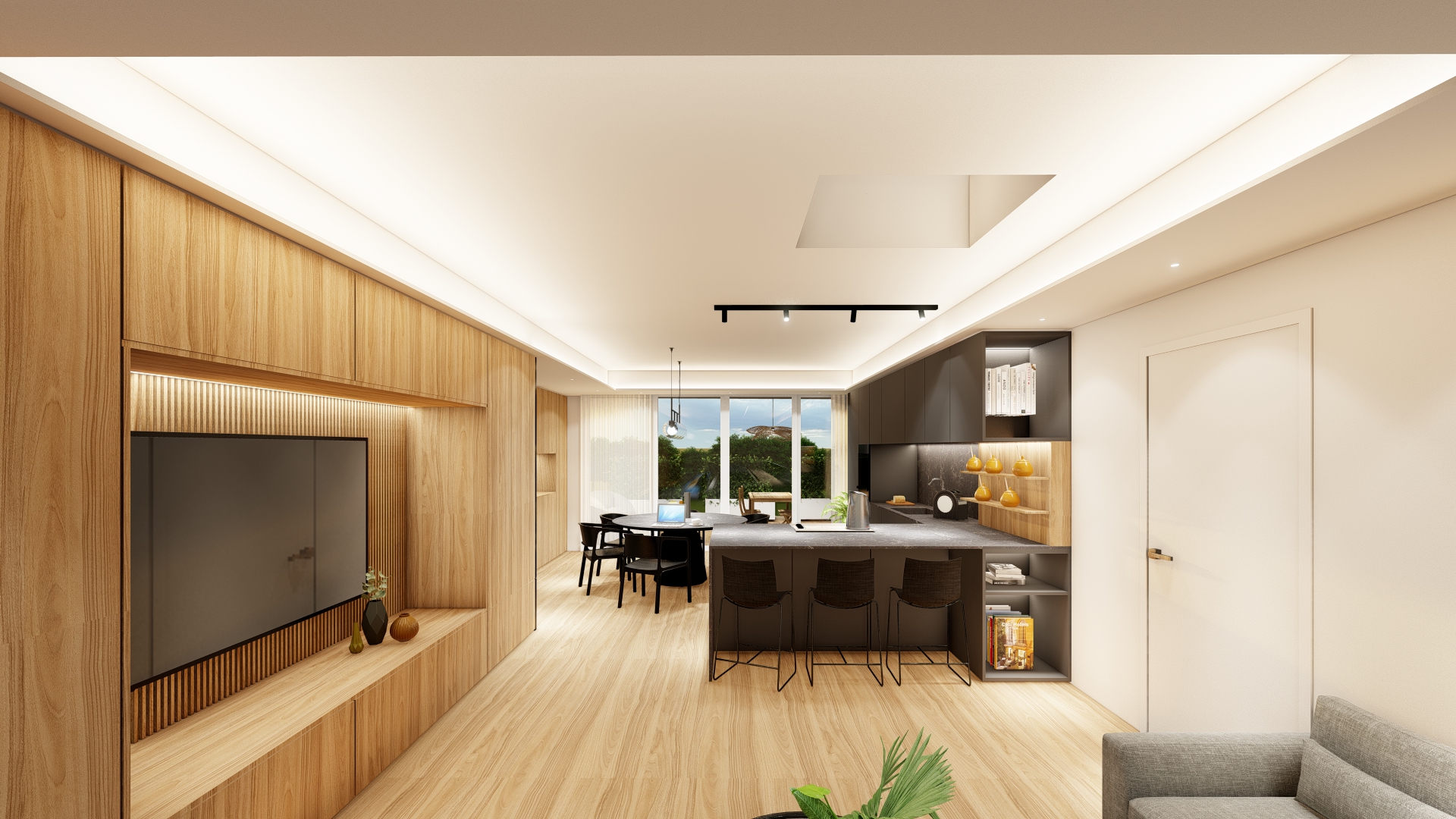 Soft Living è un interior plasmato dal dialogo tra luce e rovere.