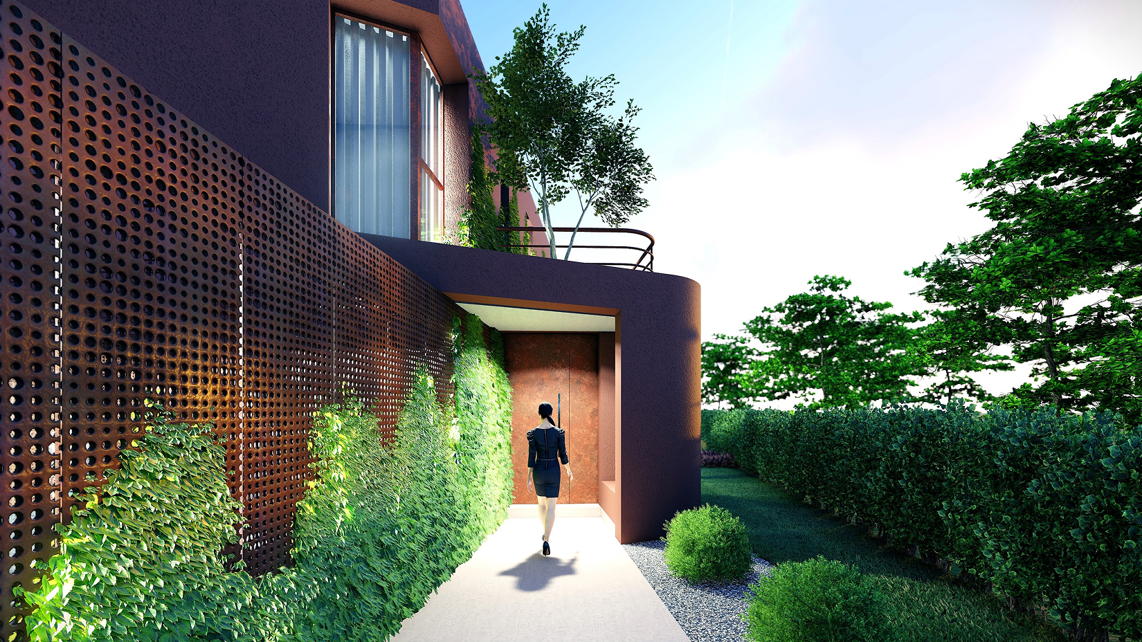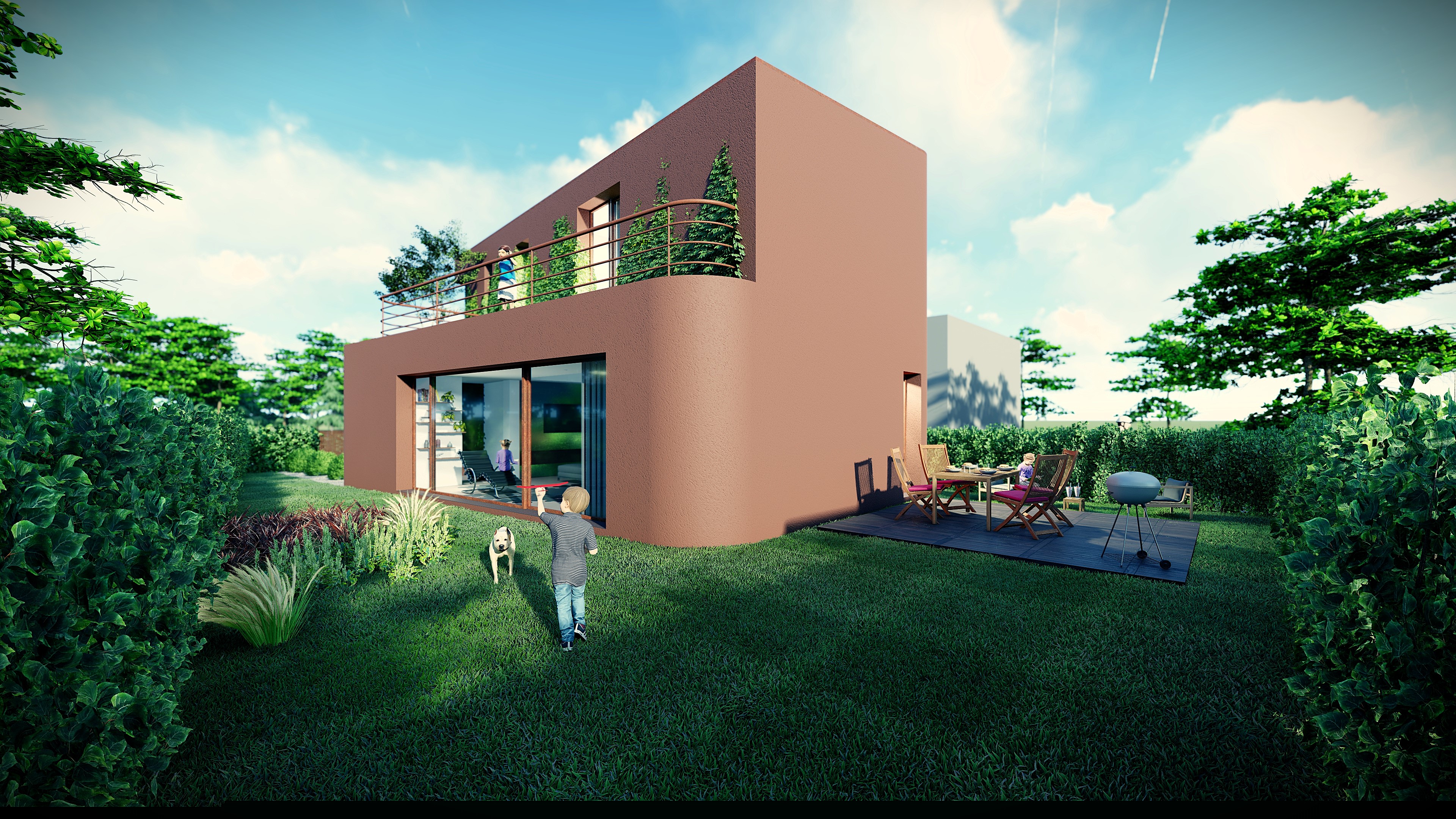 Russet House interpreta un lotto urbano attraverso forme morbide e curve protettive.